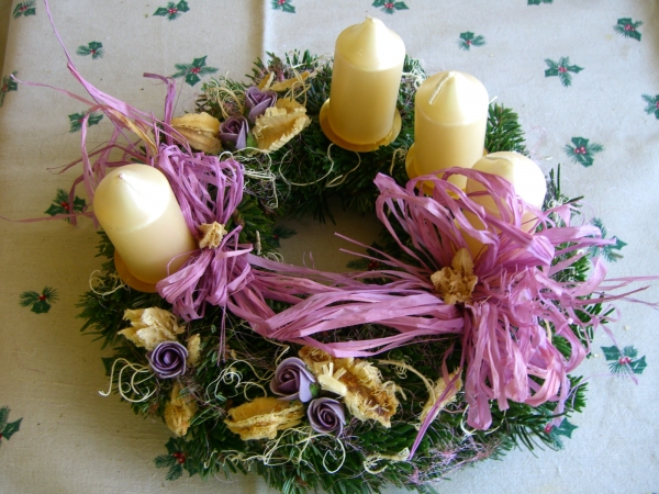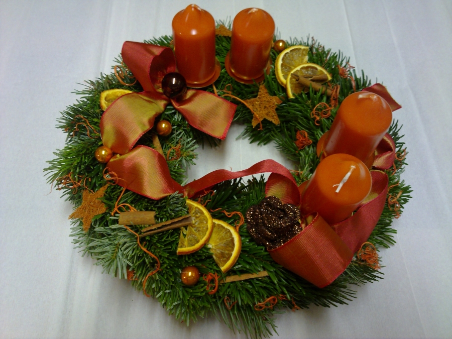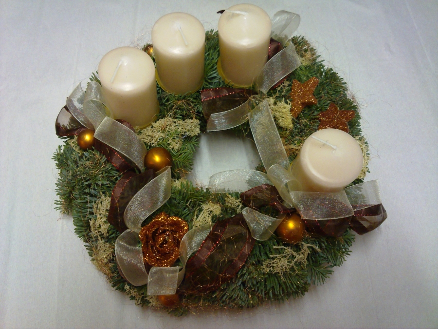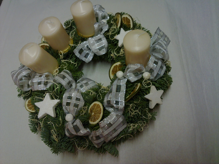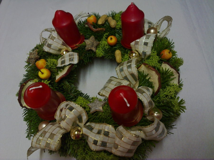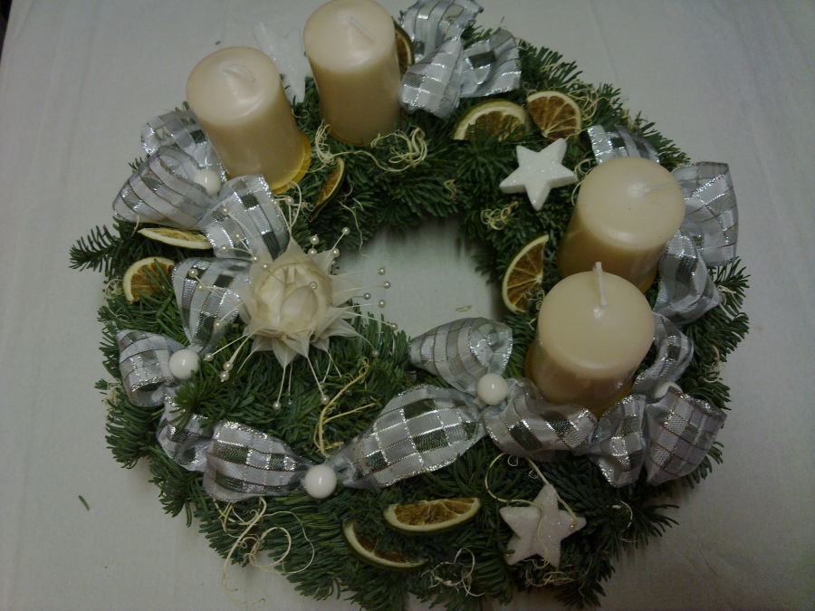 Věnce jsou vyrobeny z jedle na slaměnné podložce o průměru 20cm, takže konečná velikost věnce je 25-30cm. Cena je od 250,- do 500,-Kč, záleží na druhu svíček, stuh a přízdob. Objednávky přijímáme od začátku listopadu do poslední neděle před první adventní nedělí. Potom už pouze rozesíláme.