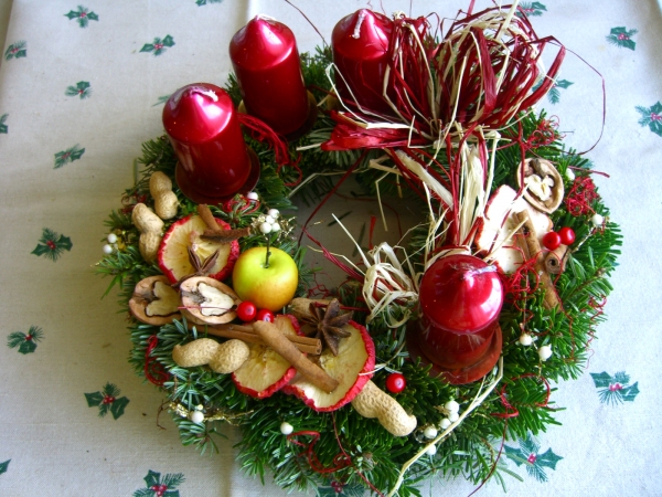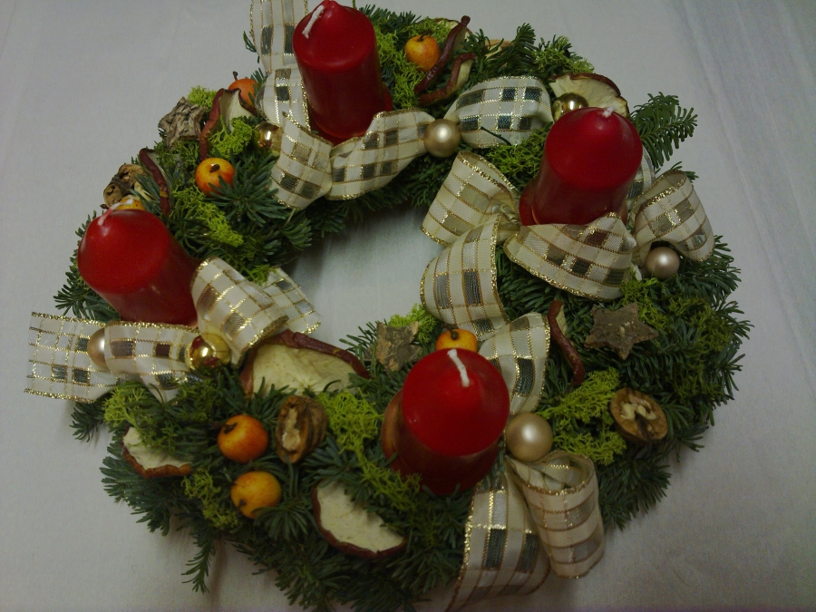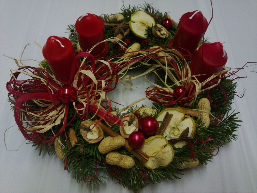 Adventní věnce:Výroba a prodej dekorací ze sušených kytek a plodů. Prodej samostatných suchých květin.