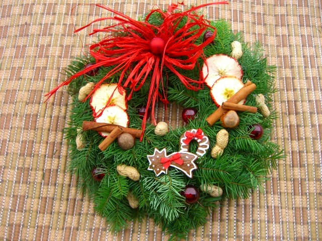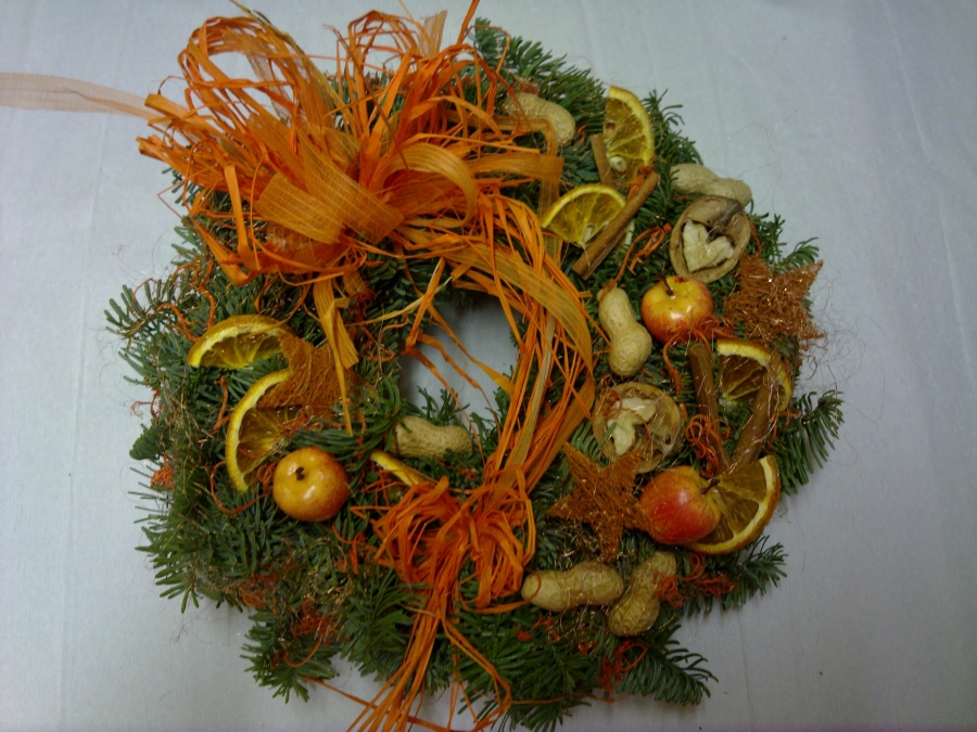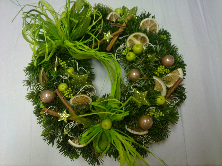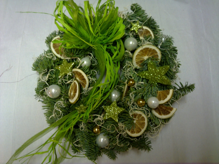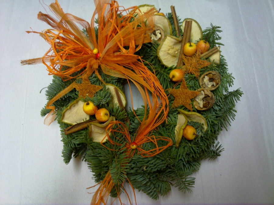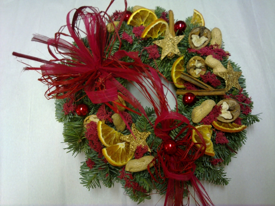 Věnce jsou vyrobeny z jedle, průměr hotového věnce je asi 25cm. Cena je od 250,- do 500,-Kč podle zvoleného materiálu.