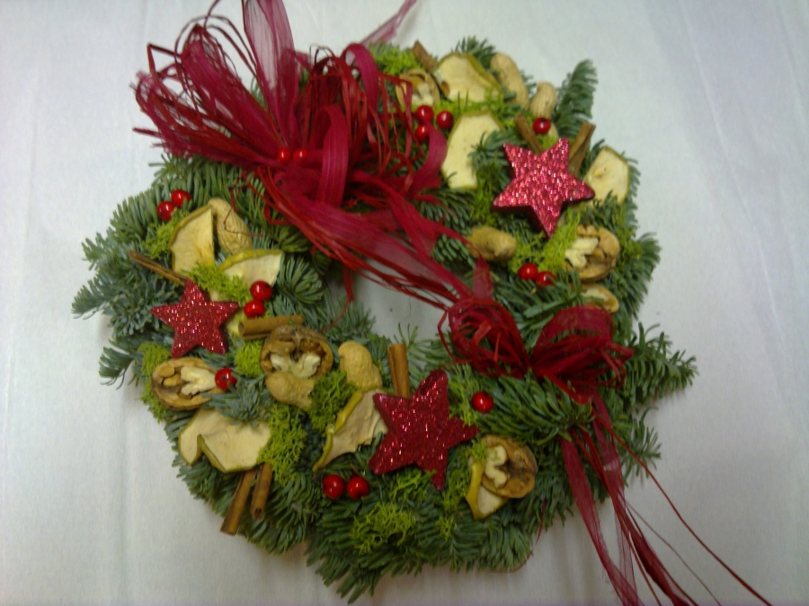 Vánoční věnce na zeď:Výroba a prodej dekorací ze sušených kytek a plodů. Prodej samostatných suchých květin.